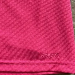 GUC. Reebok Play Dry Hot Pink Textured Tennis Skirt with attached matching shorts. 13 “ length- Small. 3 slight snags on back (see pic) Matching Crew Neck and V Neck T’s sold separately.
