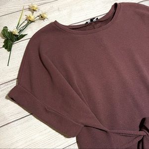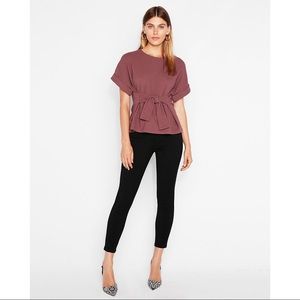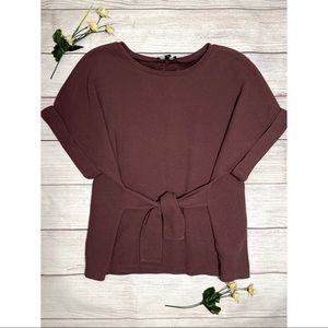 Express Textured Tie Waist Rolled Sleeve Tee