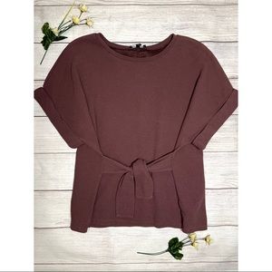 EXPRESS Textured Tie Waist Rolled Sleeve Tee in Thornberry