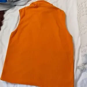 High quality, soft orange North Face vest. Fleece fabric. Hooded. Full zip with smooth zipper. NWOT.