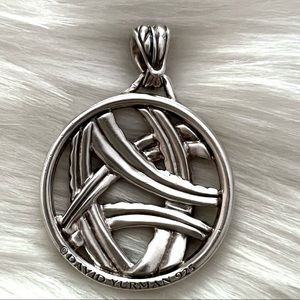Beautiful large David Yurman necklace pendant. It is the largest one that was made. Has visible diamonds. A large bale. Cable elements reminiscent of the classic cable style. Was used a handful of times. Minimal if any scratches. Stunning piece no longer sold! Nearly $2000 after taxes WHEN it WAS available! You’ll feel like a million bucks with this one! Very substantial size and weight! Necklace not included just pendant.