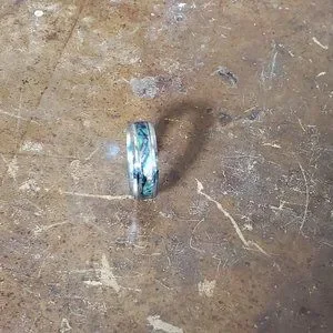 Parker Stainless Steel Men's Ring with inlayed Abalone shell. 8mm wide. Comfort fit band.