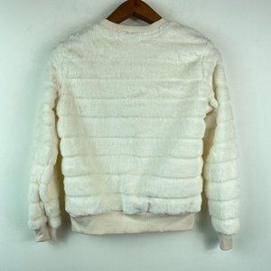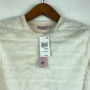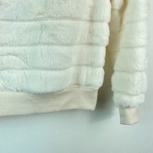 Crave Fame Juniors Womens XS Ivory White Comfy Faux Fur Sweatshirt NWT AH38