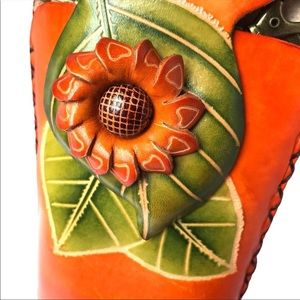 Handcrafted Floral wristlet, crossbody bag, cell phone holder, 3D sunflower, handcrafted / handmade in small batches,