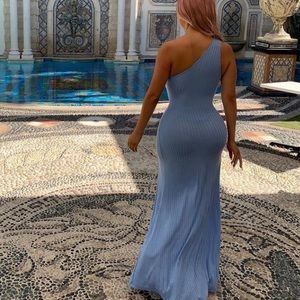 Blue one shoulder high slit maxi dress