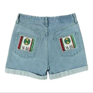 Cross Colours Cuffed Denim Short Ya Dig Hip Hop in Vintage Indigo NWOT (32)