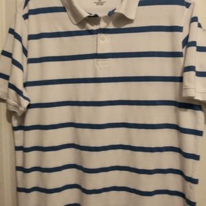 Cactus Performance Mens Short Sleeve Blue & White Stripe Polo Shirt Sze L #M-16