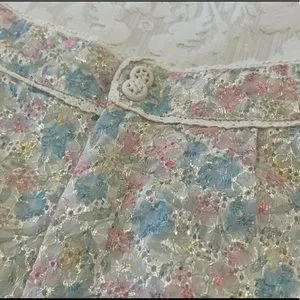 Super cute pale colours with a unique lace style fabric with white/cream piping detail