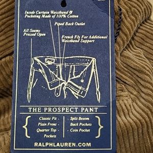 Polo Ralph Lauren Classic Fit Prospect corduroy pants. Light Brown color way and features 5 pockets, button zip fly and belt loops. Size 35, brand new with tags.