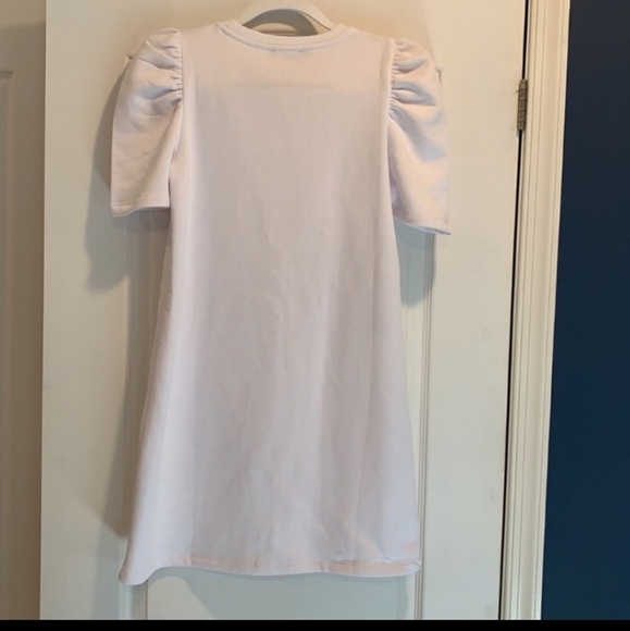 it's a white dress of Zara...with stylish puffed sleeves... fabric is damn soft and rich look...fabric is a cotton n bit stretchable.. wore it for 2 hours only and it is as gud as new...❤️❤️