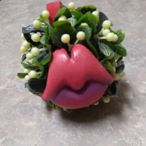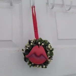 Mistletoe with whimsical plastic red lips