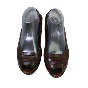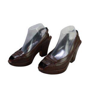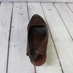 Frye Brown Leather Slip On Sling Back Open Toe Heeled Sandals Size 9.5 B