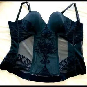 Never worn, black velvet Nancy Ganz corset/bustier with lightly padded cups - Size 10d, US 32d, UK 32d