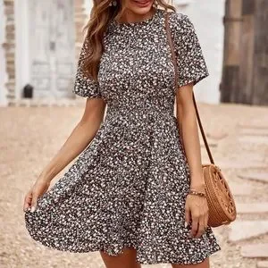 Boho floral print A-line dress