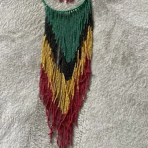 Afro centric drape necklace and earrings set.