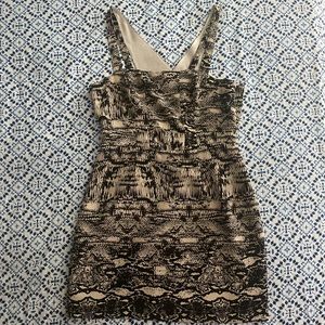 Dress from Urban Outfitters brand Silence + Noise. Has a snake print with criss cross straps. It is 32 inches long so it’s not super short! Zipper is on the side of the dress.