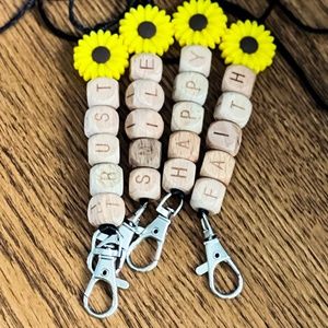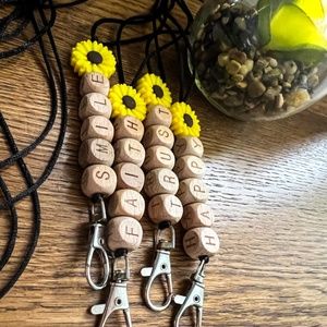 Fun, funky lanyards made with both silicone and wooden letter beads and 2mm thick nylon string. Making this product light but durable. Great for teachers, nurses and other professions/occasions requiring a lanyard. Great for theme parks and other hands-free activities including a place to hang your keys or trusty hand sanitizer. One size fits all, all a standard size.