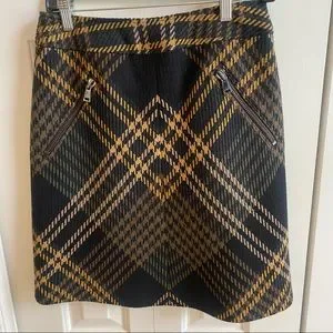 Etcetera Black and Tan argyle wool skirt sz 2 with zipper detail