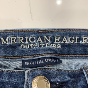 American Eagle Next Level high waisted stretch denim shorts. Size 4. They are in excellent condition.