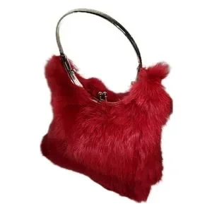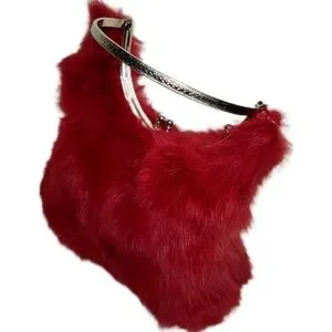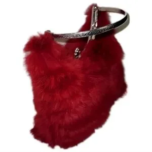 This vintage clutch handbag is made of real fur dyed in a radiant red color.