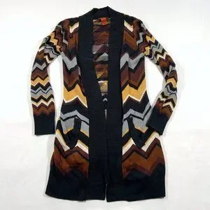 Missoni for Target Chevron Long Chevron Knit Cardigan Rayon Open Sweater Sz XS
