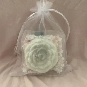 Can be a party favor or personal use. The essential oil is mango. The crystals are comprised of sea lat, Himalayan salt, epsom salt and baking soda. makes for a very soothing bath. The glitter is 24k gold