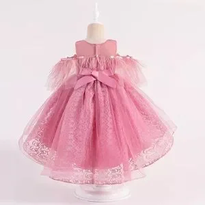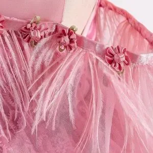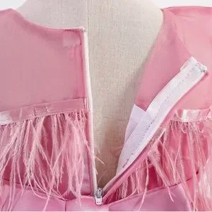 Luxury Pink Feather Lace Embroidered Dress 5046