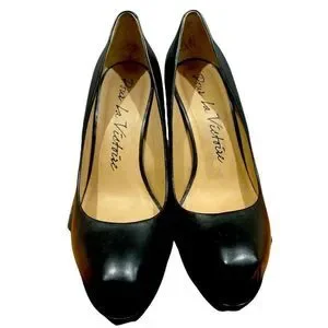 Gorgeous preloved condition Pour La Victoire black leather pumps in size 8.5. Round toe platforms on 5” heels in excellent condition. Heels in great condition.