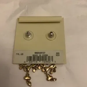 Monet Green Rhinestone and Gold Colored Metal Pierced Earrings. Approx 2-1/8” long.