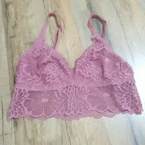 PINK by VICTORIA'S SECRET Lilac Purple Floral Lace Bralette - (Size AA-B)