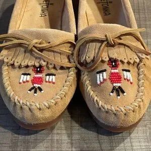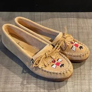 Minnetonka Brown Suede Women’s Thunderbird Beaded Moccasin Size 7