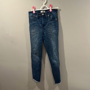 10” high rise Madewell jeans with “tulip” raw hem. Size 28