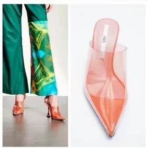 NWT ZARA HEELS CORAIL VINYL MULES POINTED TOE TRANSPARENT REF. 3838/810
