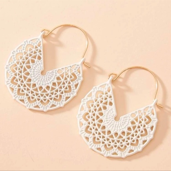Basketweave hoop earrings white gold OS