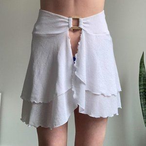 🐚Vintage y2k White Mini Skirt Bikini Coverup with Lettuce Hem🐚