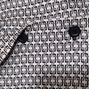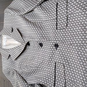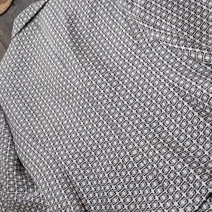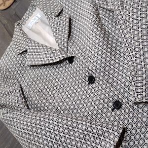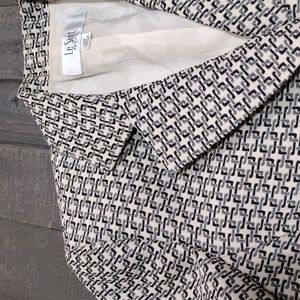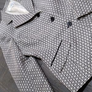 Extra Sharp Le Suit Black, Grey, Ivory designed waist length suit jacket SZ 12p ...front pockets w/black piping, shoulder pads, Vintage 90's, dress up or down!