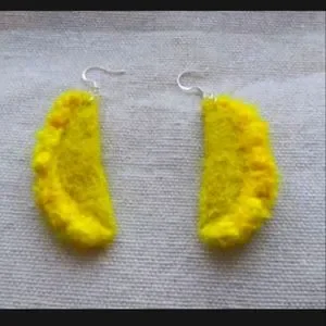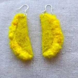 I'm personally in love with this color! They are fairly lightweight, hand-felted from White Norwegian wool and mulberry silk (after a bath in turmeric dye). Hooks are real .925 sterling silver.