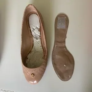 Good condition Tory Burch Kent Quilted Ballet Flat in Nude Patent 7.5