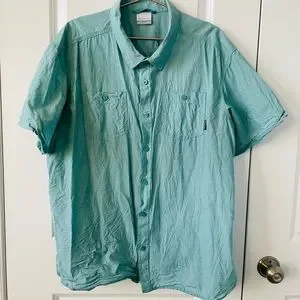 Columbia Teal Men's Short Sleeve Button Shirt (XXL)