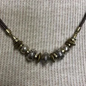 This is a Brown Necklace from Silbada with silver and gold bead details in the center.