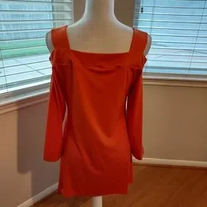 MIDNIGHT VELVET ORANGE COLD SHOULDER ASYMMETRIC SIDES LONG SLEEVE TOP