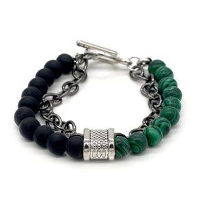 Men's bracelet with lava rock and Malachite stones. Toggle clamp.