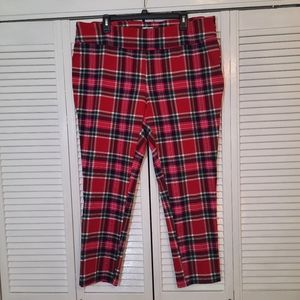 Crown & ivy red plaid crop bow hi waist pants sz 20W *F