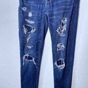 American Eagle Womens Size 0 Ripped Distressed Jeggings Jeans Stretchy Dark Wash