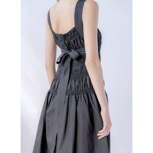 Beautifully structured dress with pleated details at waist and tie for flattering cinching by UK based designer Amy Lynn