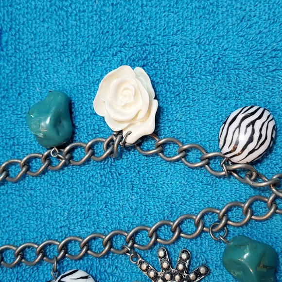 Western Style Cross Necklace and Earrings Set, Turquoise, Zebra, Flower
