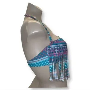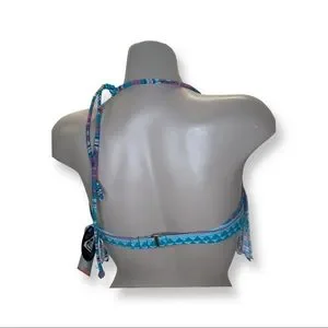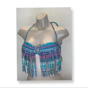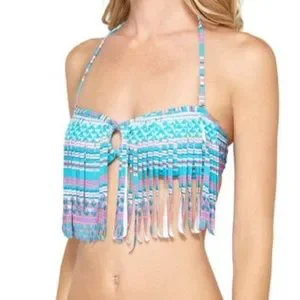 Roxy 2014 Aqua Peep Hole Fringe Bikini Top NWT