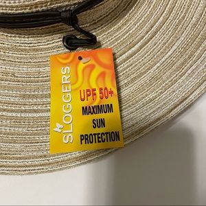 New with tags. Light tan sun hat. Has a chin strap and UPF 50+ sun protection. The last three pictures are stock photos.