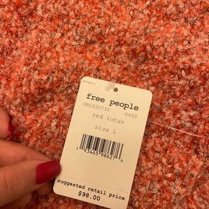 Orangish pink Free People Cowl Neck Sweater, super flowy and soft, great for any occasion.