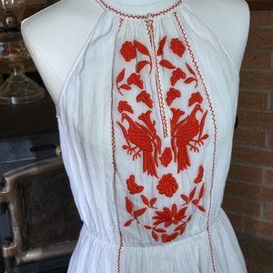 Joie Clemency Flounce Halter Dress White with Red Embroidery